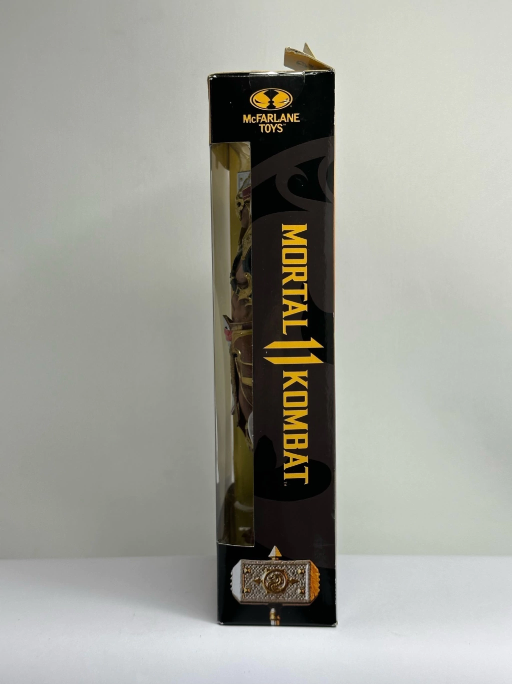 Esta impresionante figura de McFarlane Toys representa al temible emperador y villano icónico de Mortal Kombat 11, Shao Kahn. Con un nivel de detalle asombroso, la figura captura su imponente armadura, su característico casco con cuernos y su postura dominante.