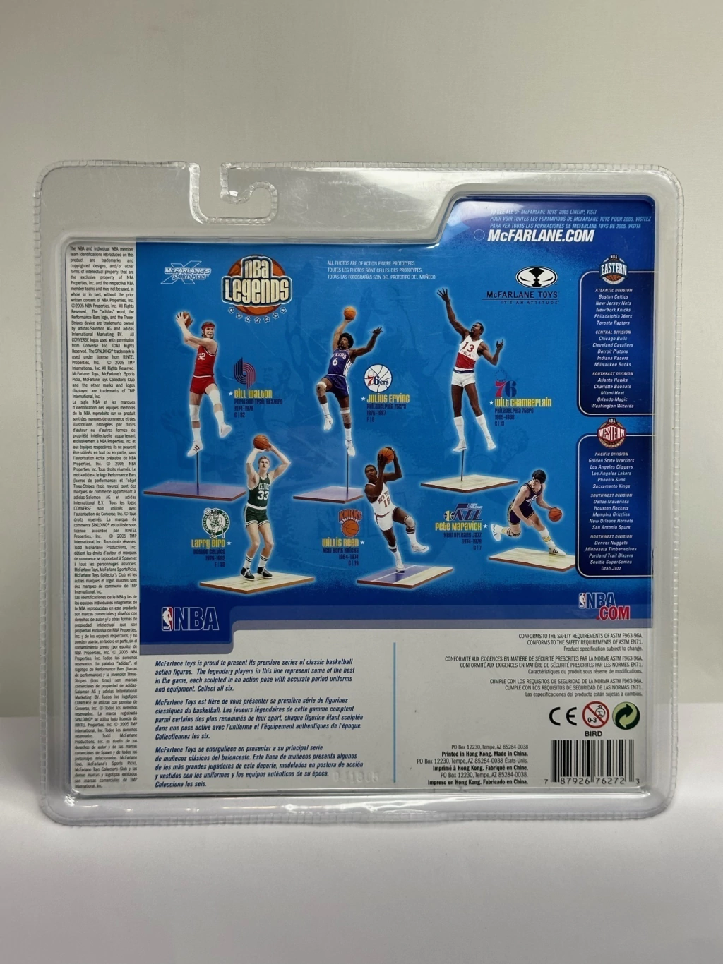 Una leyenda inmortalizada en detalle. Esta figura de Julius "Dr. J" Erving, parte de la línea NBA Legends de McFarlane Toys lanzada en 2005, celebra la trayectoria del icónico alero de los Philadelphia 76ers.
