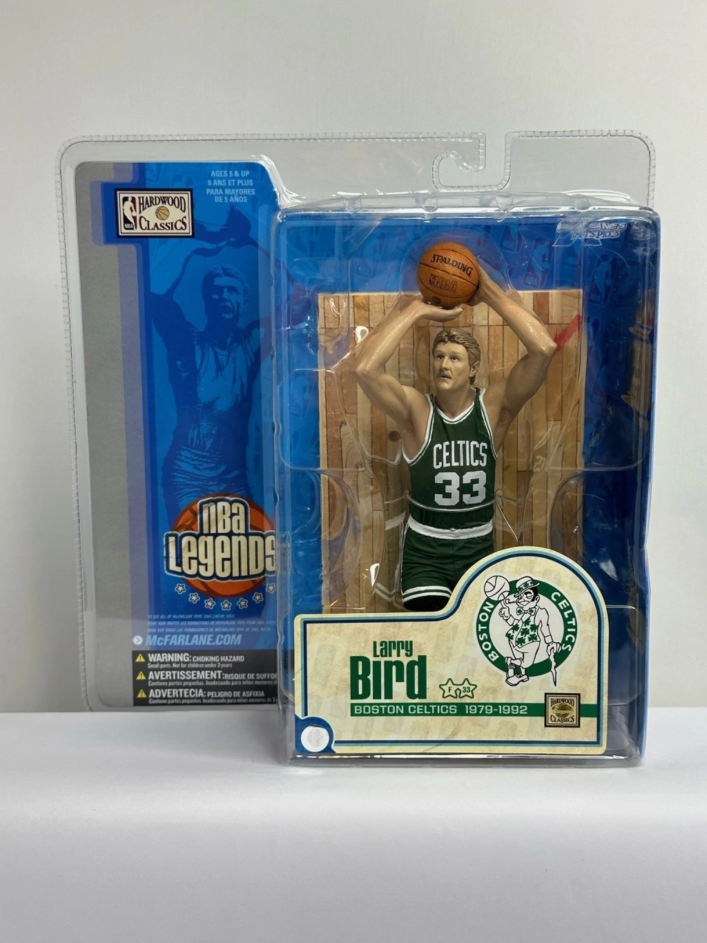 Una figura que captura la esencia del básquet clásico. Esta edición de Larry Bird, parte de la línea NBA Legends lanzada por McFarlane Toys en 2005, rinde homenaje al legendario alero de los Boston Celtics, símbolo indiscutido de la franquicia y la NBA de los '80.