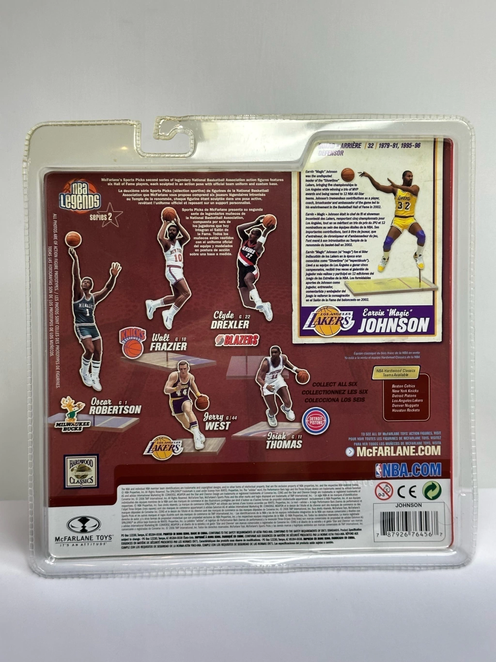 Una figura que encapsula el verdadero espíritu del Showtime. Esta edición de Earvin “Magic” Johnson, lanzada en 2006 como parte de la NBA Legends Series 2 de McFarlane Toys, celebra al carismático base de los Los Angeles Lakers, uno de los jugadores más influyentes de todos los tiempos.