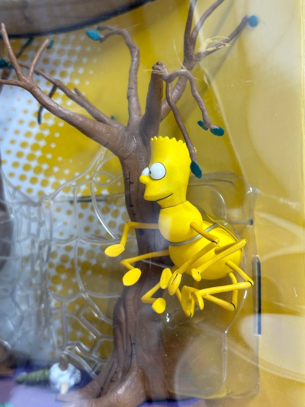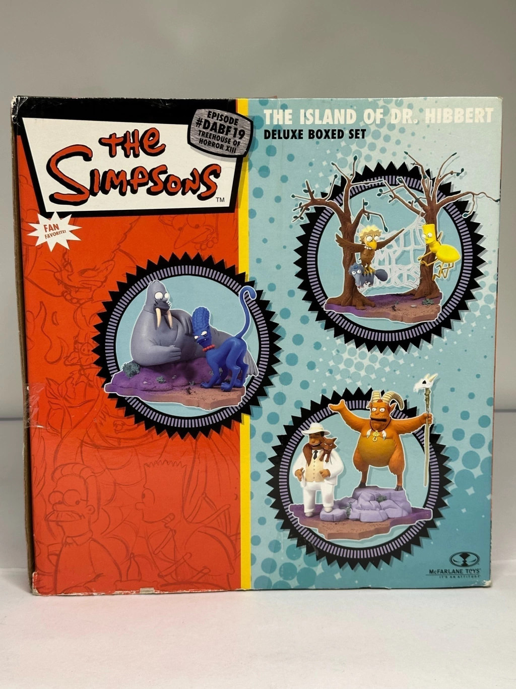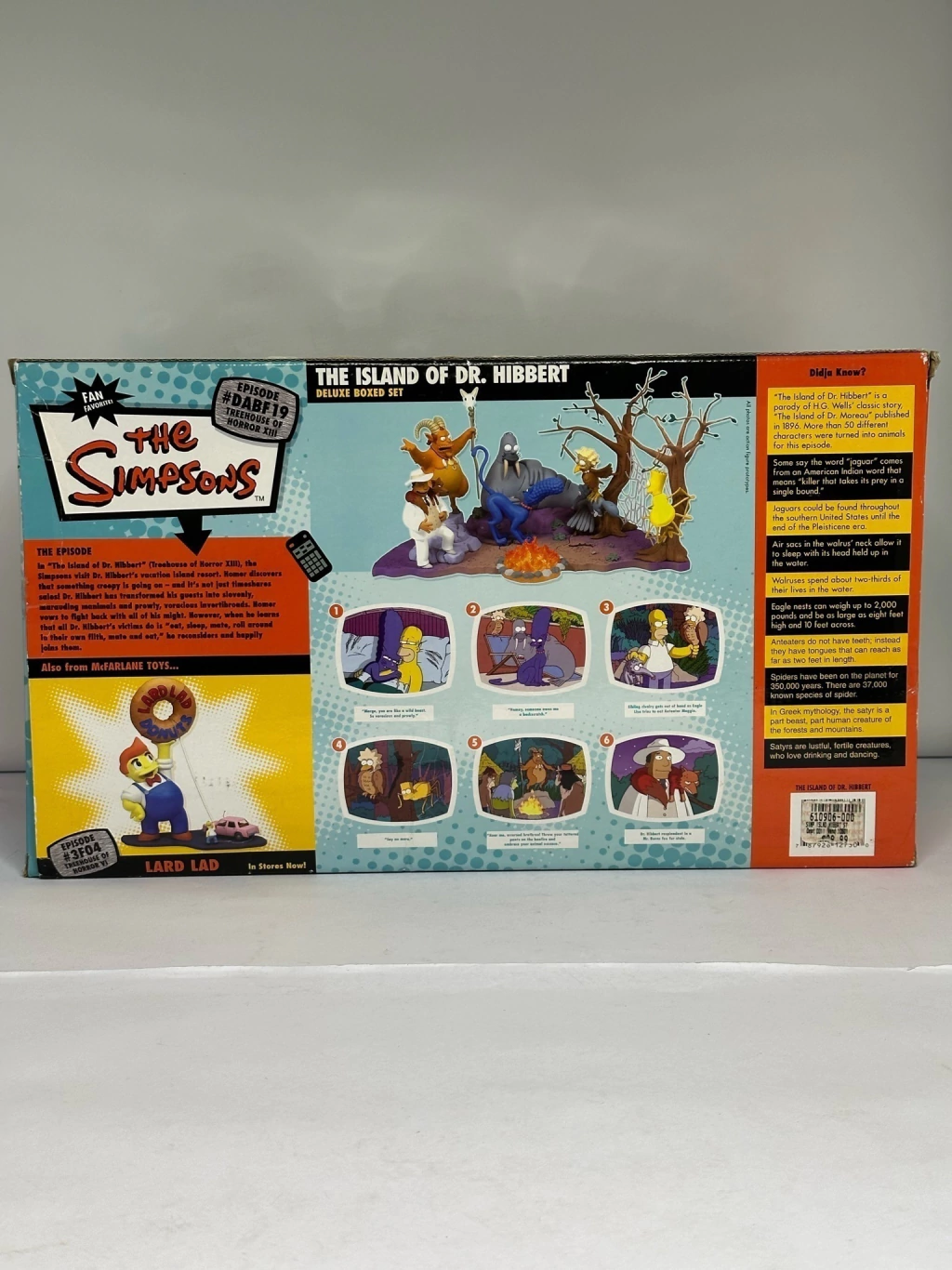 Una de las piezas más raras y buscadas del universo Simpsons. Este set deluxe lanzado en 2006 por McFarlane Toys recrea una escena del icónico episodio especial de Halloween “The Island of Dr. Hibbert”, una parodia de “La isla del Dr. Moreau”.