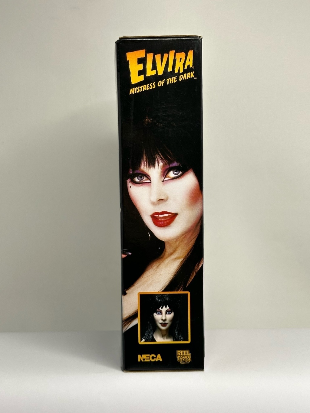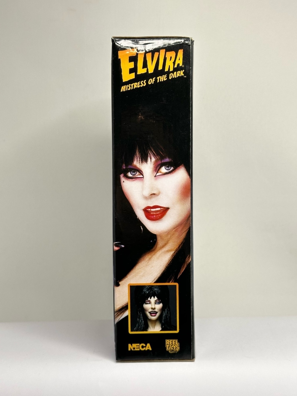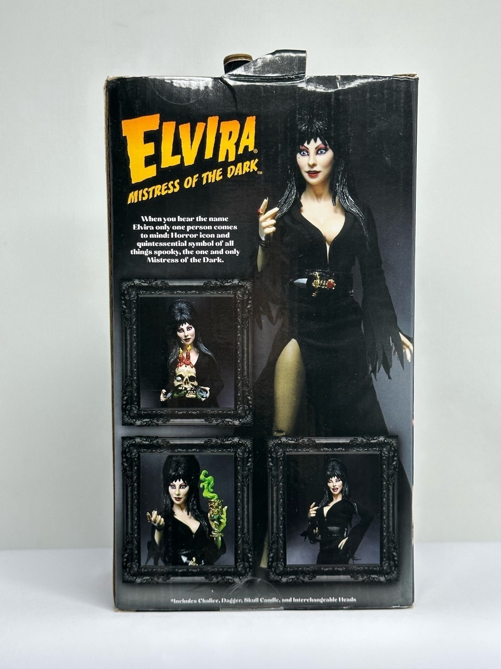 Esta figura de NECA representa a Elvira, la icónica "Mistress of the Dark", en una versión altamente detallada y fiel a su personaje clásico. Con un vestido negro característico, maquillaje dramático y una expresión seductora, esta figura captura perfectamente el estilo único y la personalidad atrevida de Elvira.