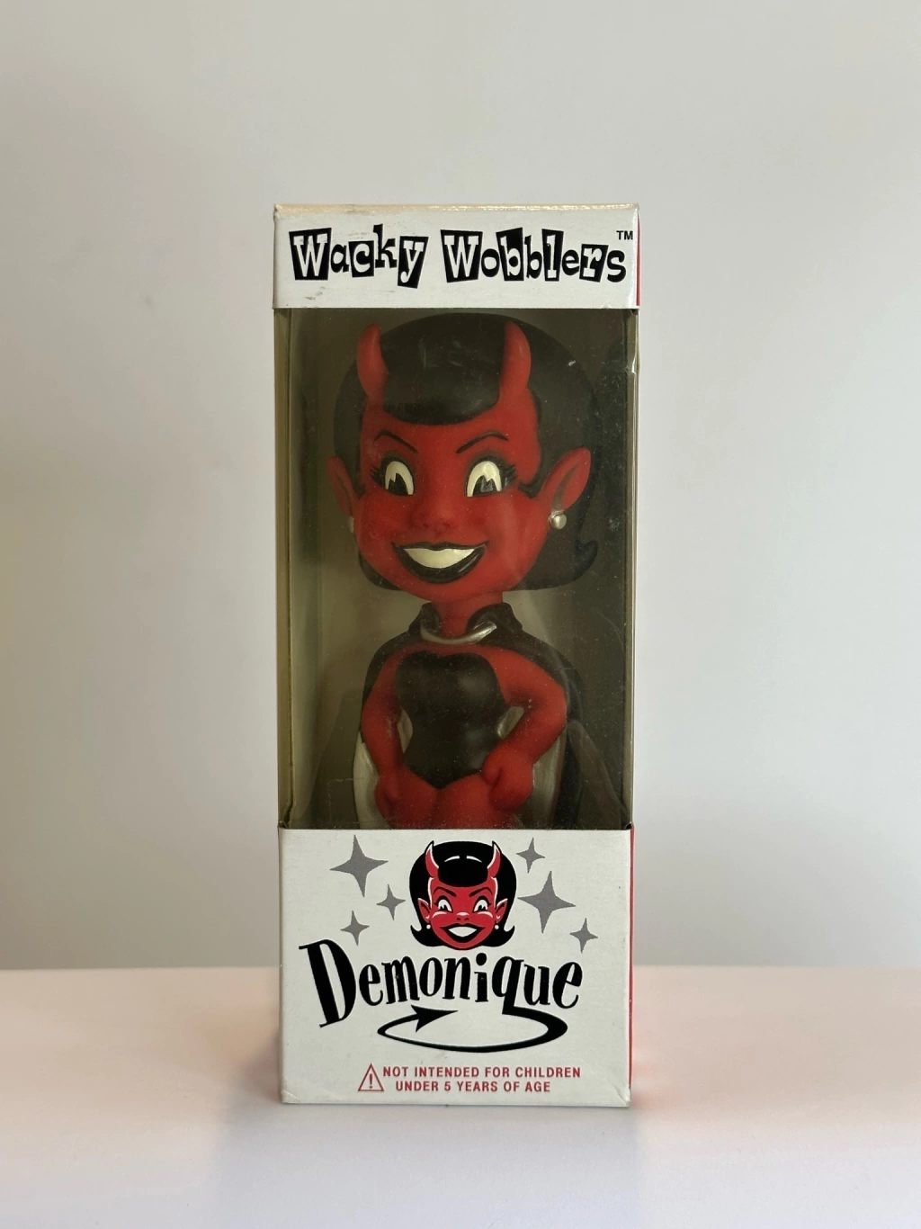 Una figura única y divertida dentro de la línea Wacky Wobblers, Demonique captura un personaje diabólico con el clásico estilo caricaturesco y cabeza grande que se mueve al tocarlo. Su diseño combina detalles pintados a mano y colores intensos que la hacen destacar en cualquier colección.
