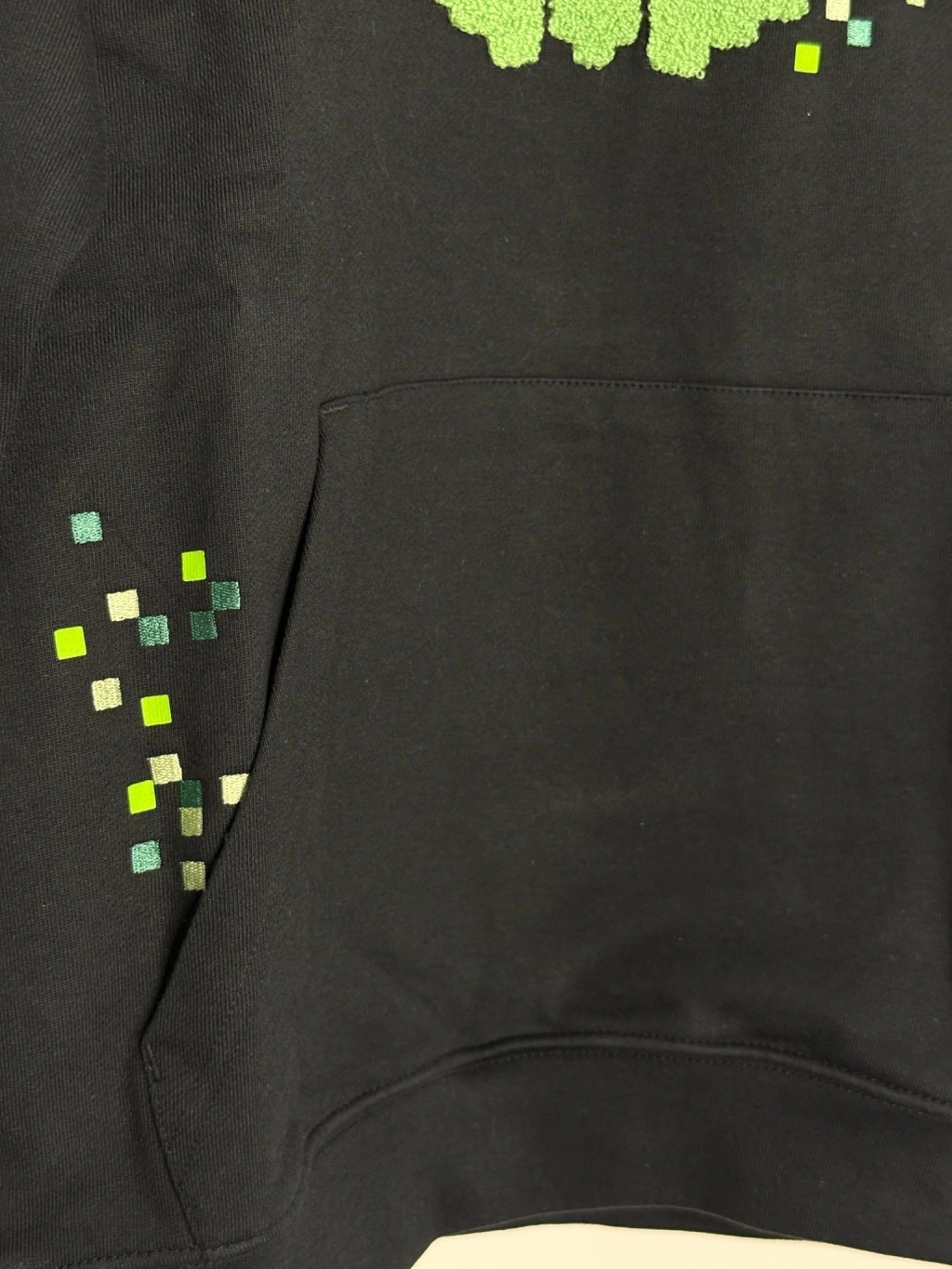 - Estampado pixelado en la espalda inspirado en Minecraft