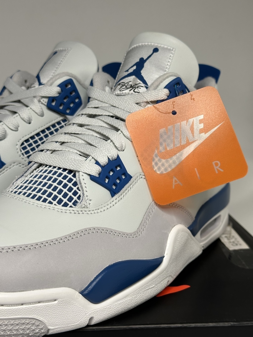 Las Jordan 4 Retro Military Blue marcan el regreso de un clásico absoluto del universo Jordan. Esta silueta, que debutó en 1989, vuelve con su colorway original y materiales premium, combinando nostalgia y estilo moderno. El diseño presenta una base en cuero blanco con detalles en gris neutro y toques de azul militar, que aportan frescura y carácter a este ícono del streetwear.