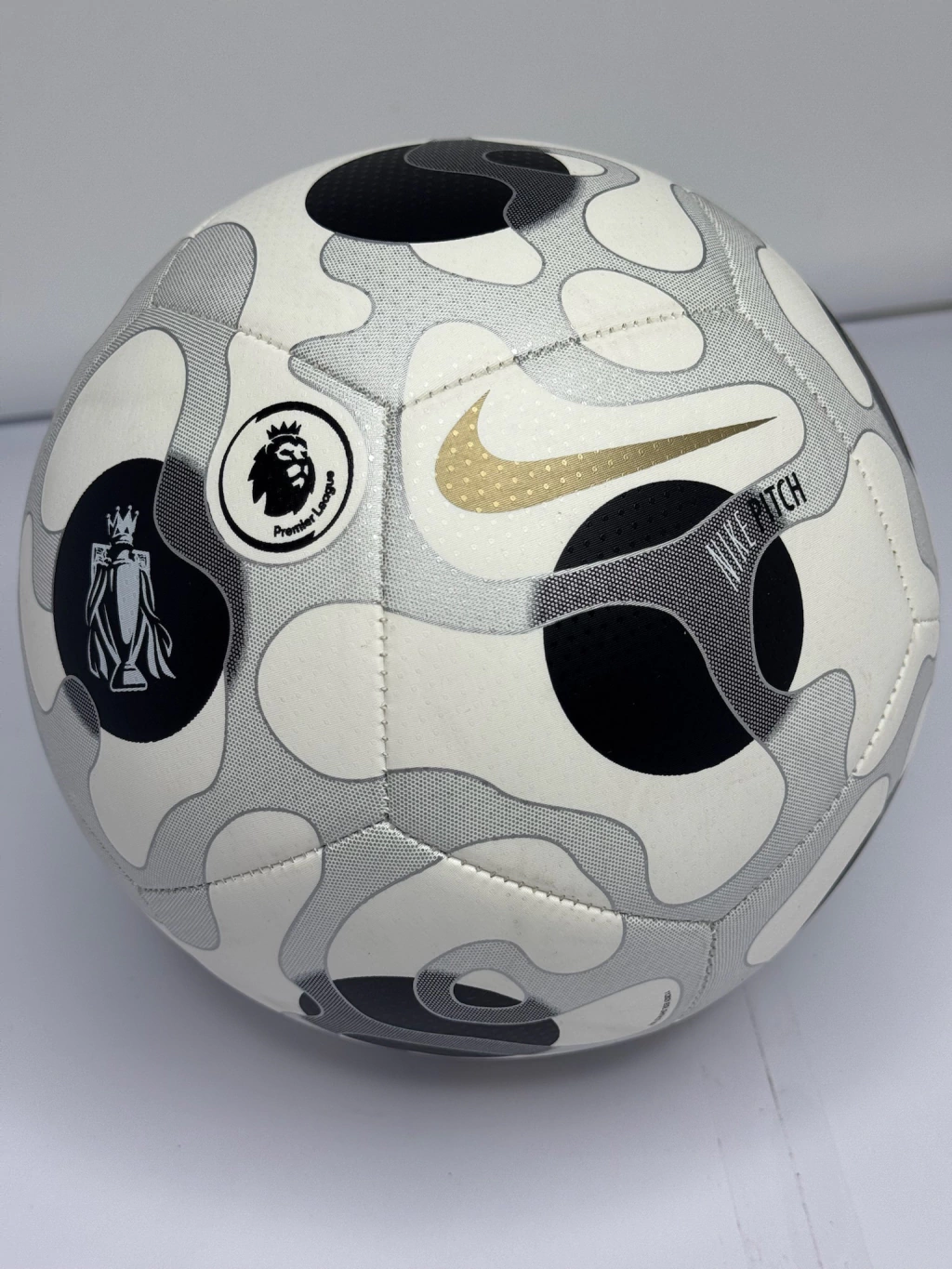 Diseño: Gráficos de alto contraste para facilitar la visibilidad en el campo, con el logo de la Premier League y detalles Nike bien visibles.
