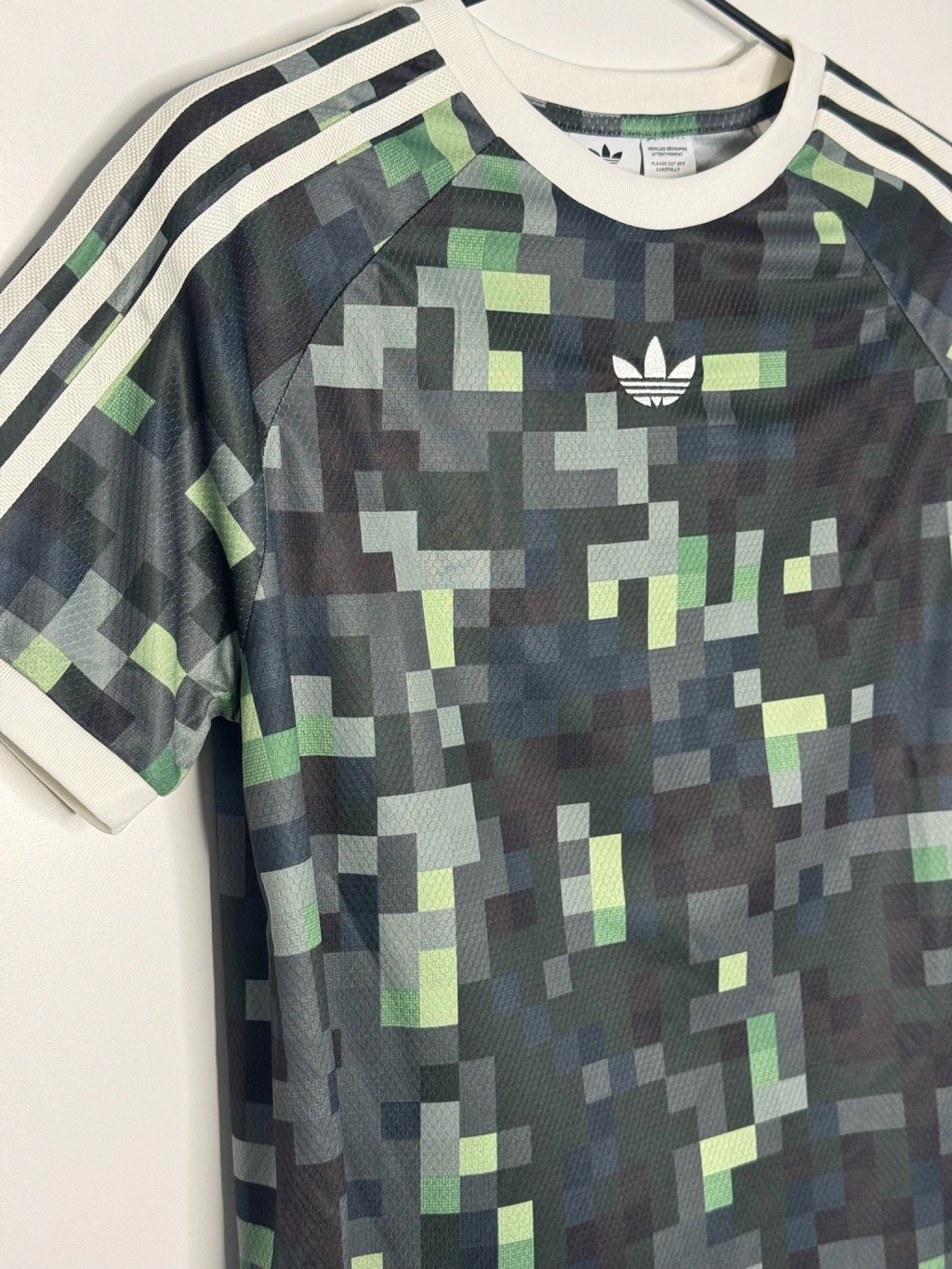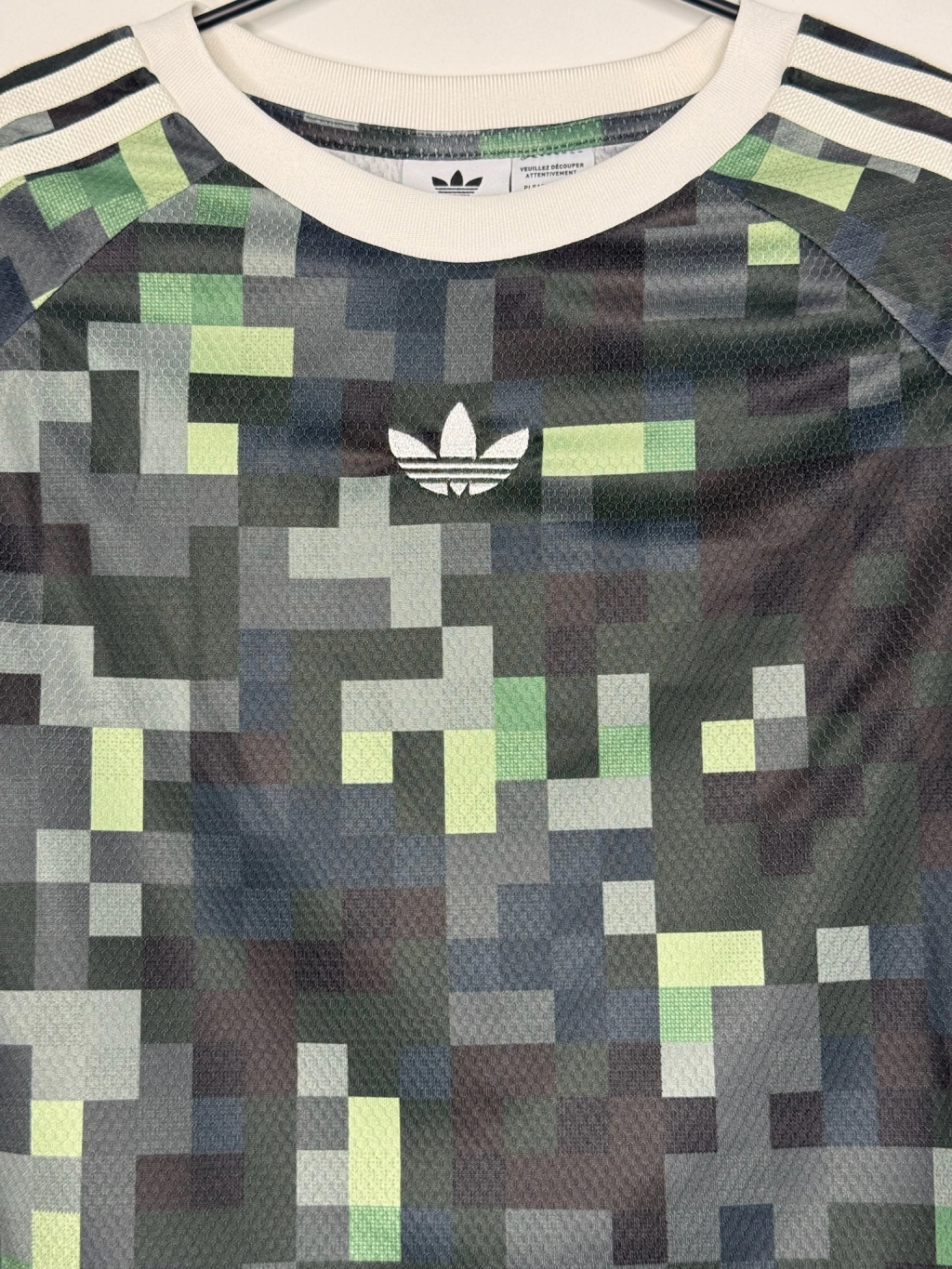 La Adidas Originals x Minecraft Graphic Tee forma parte de la colaboración lanzada en 2025 entre Adidas y Minecraft, inspirada en A Minecraft Movie y el universo pixelado del videojuego. Esta camiseta juvenil combina el estilo urbano de Adidas con gráficos vibrantes que rinden homenaje a los paisajes y mobs icónicos de Minecraft, como el “portal azul” o personajes como Creepers. Confeccionada en algodón suave, ofrece un corte holgado para un look relajado y cómodo. Su estampado pixelado de alta calidad en la parte delantera destaca por su diseño blocky, ideal para fans del gaming y streetwear.